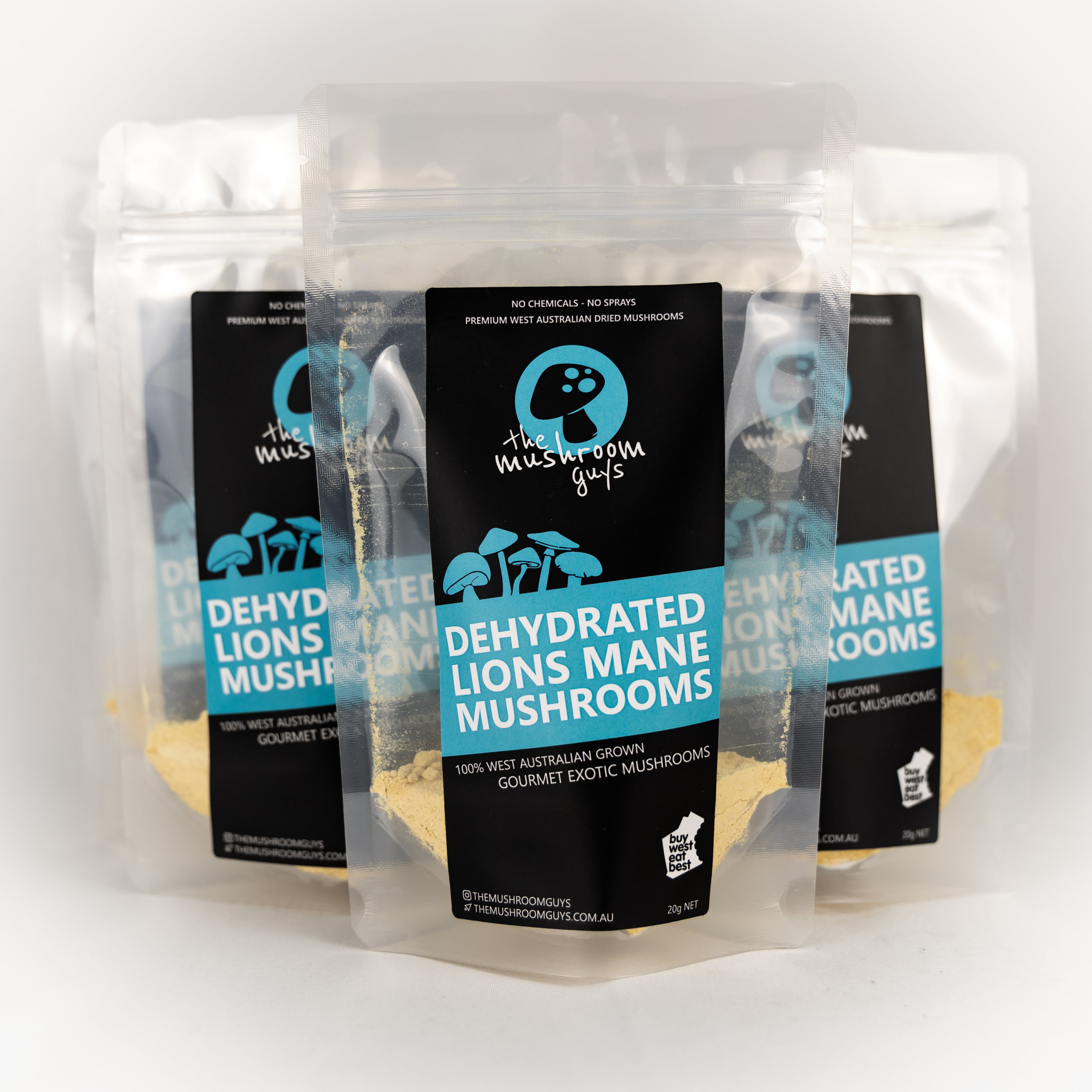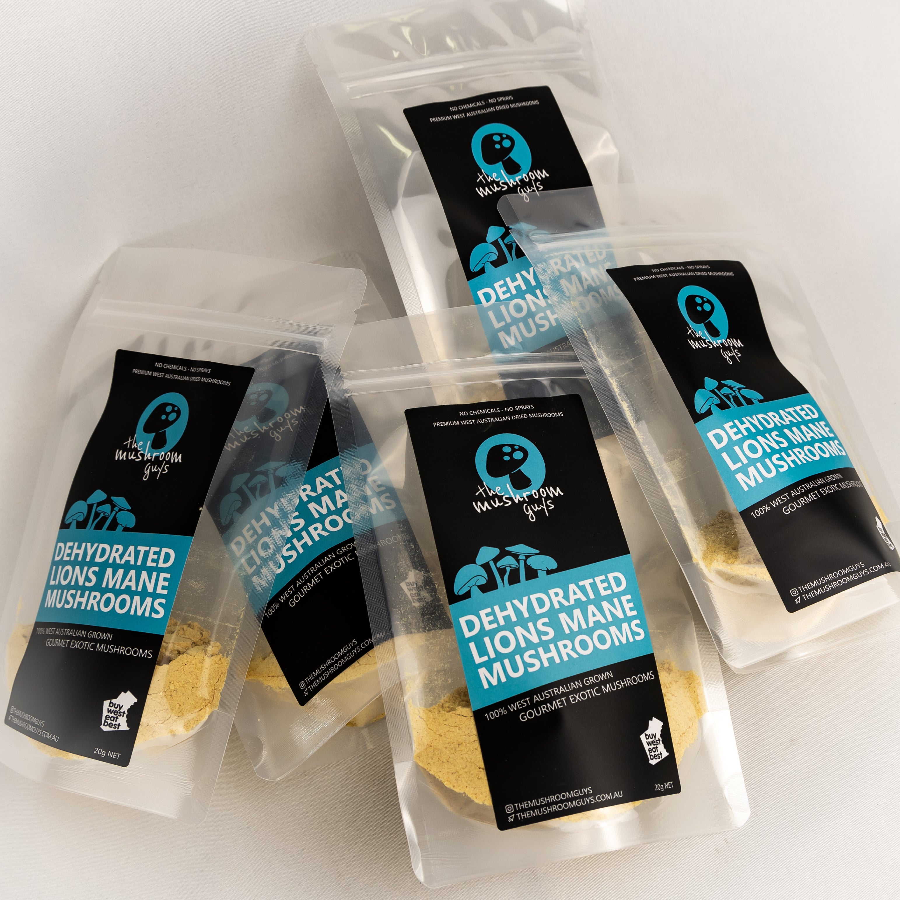 60g of 100% West Australian Grown, Dehydrated Pieces or Powdered Full Fruiting Body Lion's Mane Mushroom.