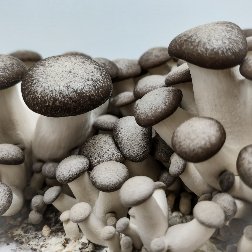 Shimofuri Hiratake are a new variety of mushroom produced by crossbreeding a European oyster mushroom with a Japanese oyster mushroom.
